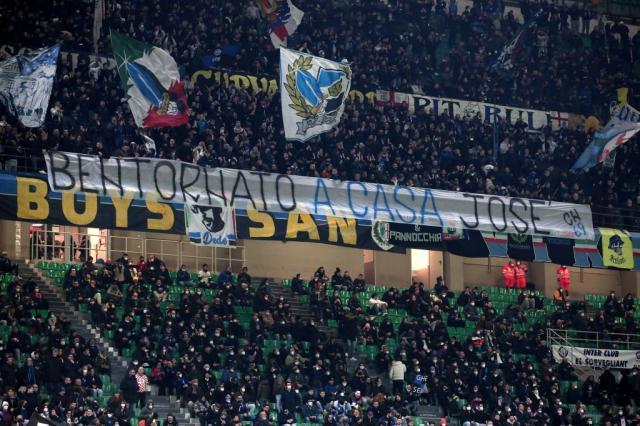 可能有球迷发现了,刚刚结束的米兰德比,现场的歌声都没有今天的响亮,甚至连标志性的tifo也省了,这是因为他们在表达对俱乐部球票分配不均的不满。穆里尼奥的出现让他们暂时放下了怨气,将条幅和标语重新拿了出来:“欢迎回家,若泽”,“若泽,你永远是我们中的一员”,现场这32000人可能有一半都是来看他们的若泽的。