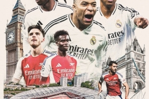 赛前,皇马官方社媒发布了为此役制作的海报,姆巴佩、卡马文加、罗德里戈三人出镜在酋长球场上空,其中伦敦大笨钟赫然在侧。